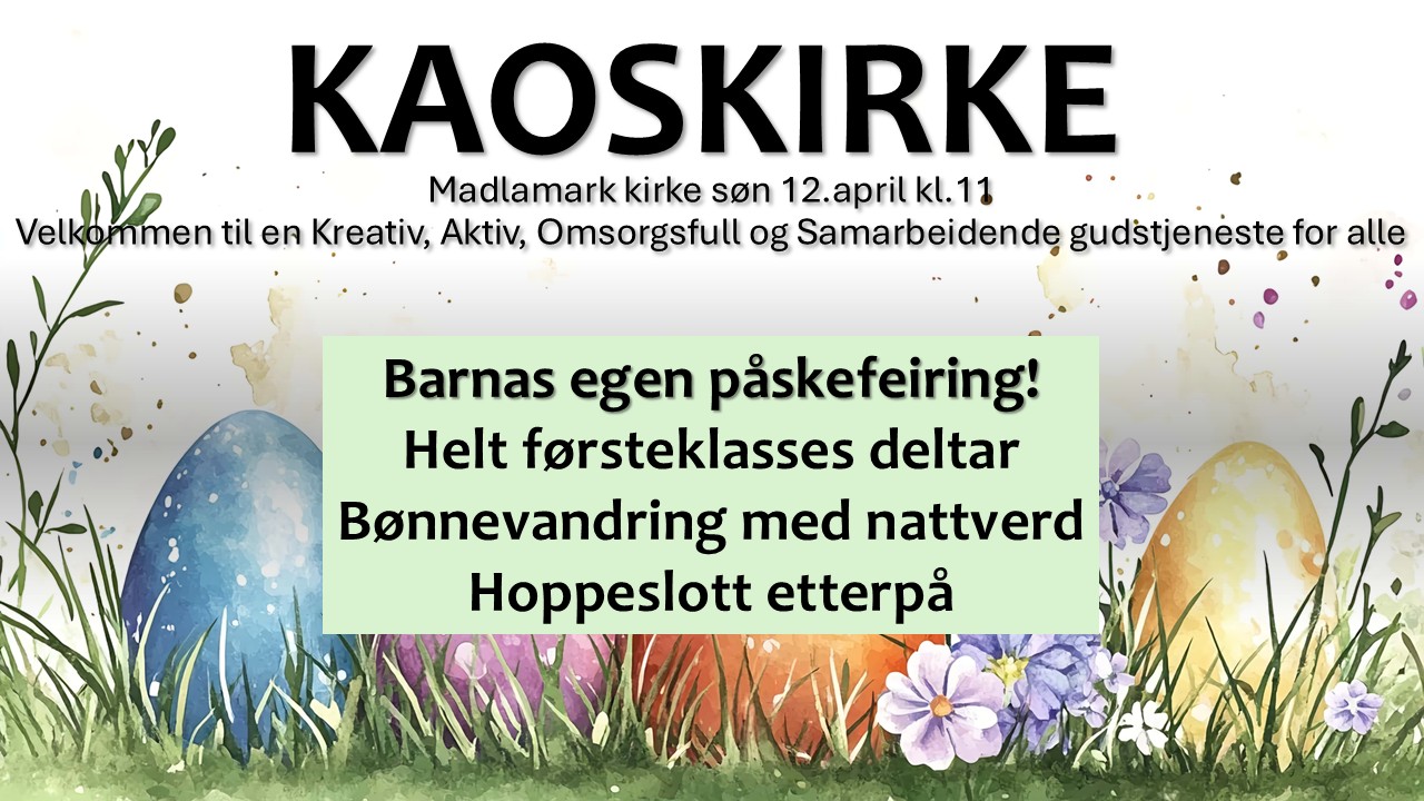 Påske feires i kirken! I Madlamark har vi følgende gudstjenester:
